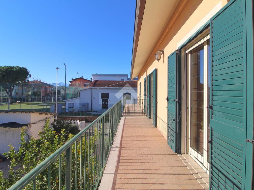 Salendo al primo piano, troviamo la zona notte, composta da tre spaziose camere matrimoniali, ognuna con il proprio balcone, che permette di godere di viste rilassanti. Il bagno principale, impreziosito da mosaici e dotato di un box doccia, offre un ambiente raffinato e funzionale.