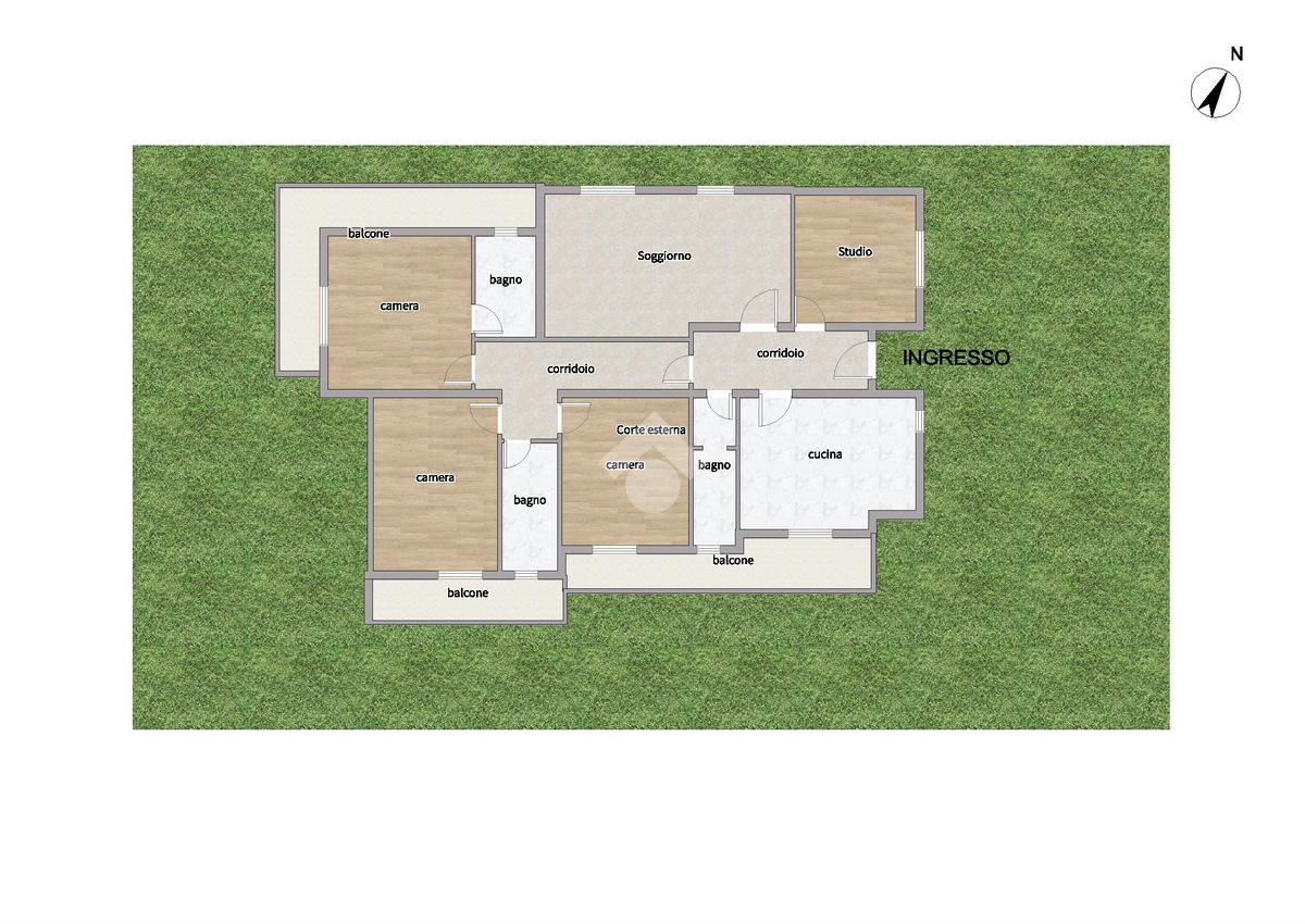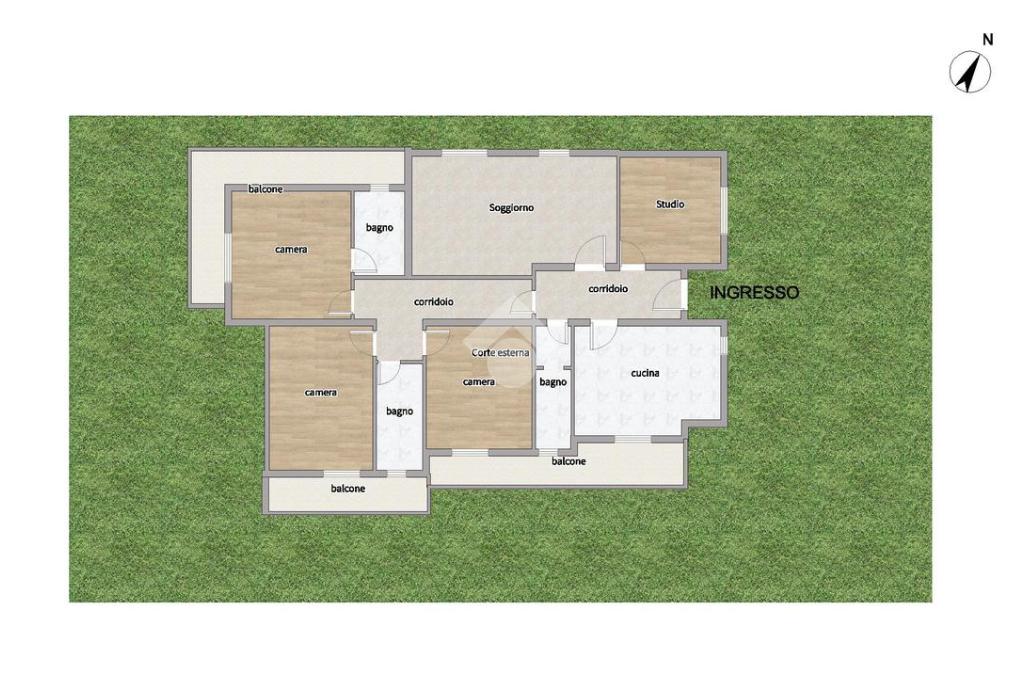 Al piano terra, l'ingresso conduce a un disimpegno che apre la strada verso un ampio soggiorno, ideale per accogliere ospiti e trascorrere piacevoli serate in famiglia. La cucina separata, dotata di un caratteristico camino e affacciata su un balcone, rappresenta il cuore della casa, perfetto per chi ama cucinare e condividere pasti in compagnia. Completano il piano tre confortevoli camere da letto, di cui una con bagno privato, uno studio versatile e due bagni.